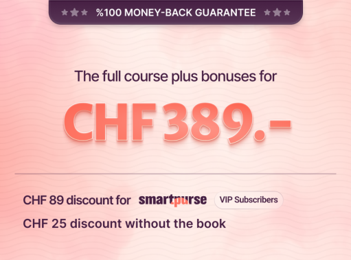 - Bonus: Financial plan (value CHF 99.-), 3 months VIP coaching, ticket for 2 months if desired